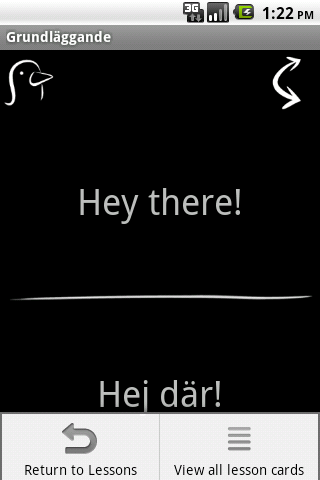The interface for GoSwedish is simple: You view a list of lessons and select one to start. Once you’re in a lesson, you can go back to the main lesson list at any time. Here’s the interface, when you’re in a lesson in iOS.